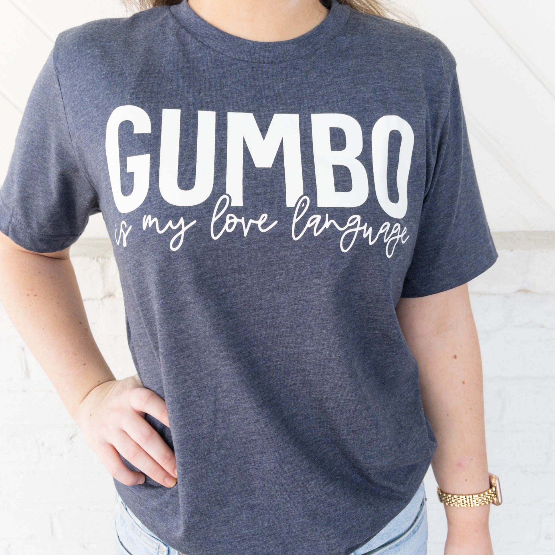Declare your love for gumbo with our 'Gumbo is My Love Language' graphic tee. A delicious way to express your culinary affection!
